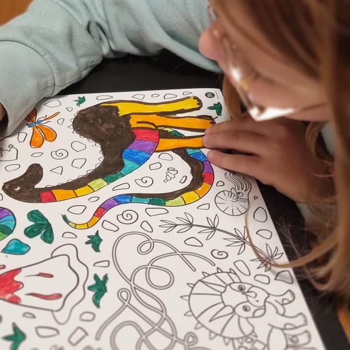 Mach die nächste Feier besonders kreativ – bestelle jetzt das 12er-Set Dino-Platzsets zum Ausmalen bei supermoms.ch!