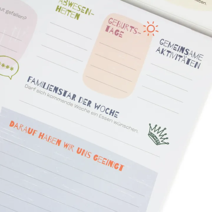 Im Familienalltag herrscht oft Trubel, besonders wenn selbst die Kleinsten ihre eigenen Freizeitaktivitäten haben. Zwischen Fussballtraining, Vereinssitzungen, Geigenstunde, Schule und Berufsleben bleibt kaum Zeit, wirklich als Familie zusammen zu sein. Dabei ist der Austausch und das gemeinsame Erleben zentral – es stärkt den Zusammenhalt und gibt jedem die Möglichkeit, sich in einer sicheren und liebevollen Umgebung weiterzuentwickeln. Mit unserem Set aus 52 Karten setzt du deine Familie über das kommende Jahr bewusst in den Mittelpunkt. Jede Woche wählst du mit deinen Liebsten eine Karte aus, stellst sie im mitgelieferten Kartenhalter auf und freust dich auf ein neues gemeinsames Abenteuer. Ideal für Familien mit Kindern zwischen 6 und 16 Jahren. Entdecke mehr auf Supermoms, deinem Schweizer Online-Shop für Familienprodukte.
