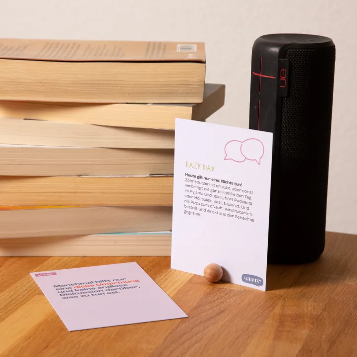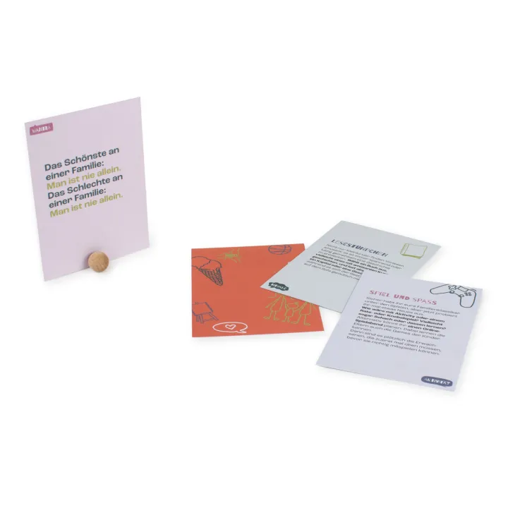 Im Familienalltag herrscht oft Trubel, besonders wenn selbst die Kleinsten ihre eigenen Freizeitaktivitäten haben. Zwischen Fussballtraining, Vereinssitzungen, Geigenstunde, Schule und Berufsleben bleibt kaum Zeit, wirklich als Familie zusammen zu sein. Dabei ist der Austausch und das gemeinsame Erleben zentral – es stärkt den Zusammenhalt und gibt jedem die Möglichkeit, sich in einer sicheren und liebevollen Umgebung weiterzuentwickeln. Mit unserem Set aus 52 Karten setzt du deine Familie über das kommende Jahr bewusst in den Mittelpunkt. Jede Woche wählst du mit deinen Liebsten eine Karte aus, stellst sie im mitgelieferten Kartenhalter auf und freust dich auf ein neues gemeinsames Abenteuer. Ideal für Familien mit Kindern zwischen 6 und 16 Jahren. Entdecke mehr auf Supermoms, deinem Schweizer Online-Shop für Familienprodukte.