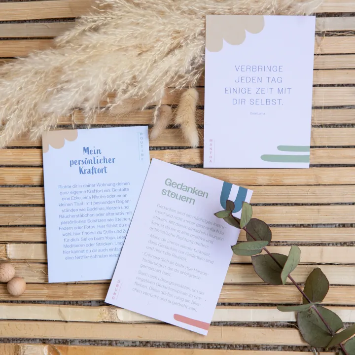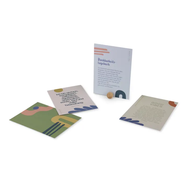 Diese 52 Karten bieten dir kreative Anregungen, wie du dir selbst etwas Gutes tun und entspannende Momente nur für dich schaffen kannst. Ob durch einfache Mantras, das Einüben kurzer Routinen, Momente voller Selbstliebe oder durch liebevolle Herausforderungen und Übungen – jede Karte inspiriert dich auf neue Weise. Zu Beginn der Woche wählst du eine Karte aus und stellst sie im mitgelieferten Kartenhalter auf. Damit bist du perfekt vorbereitet auf deine ganz persönliche Auszeit. Ideal für deinen Einkauf bei Supermoms, deinem Schweizer Online-Shop für Wohlfühlprodukte.