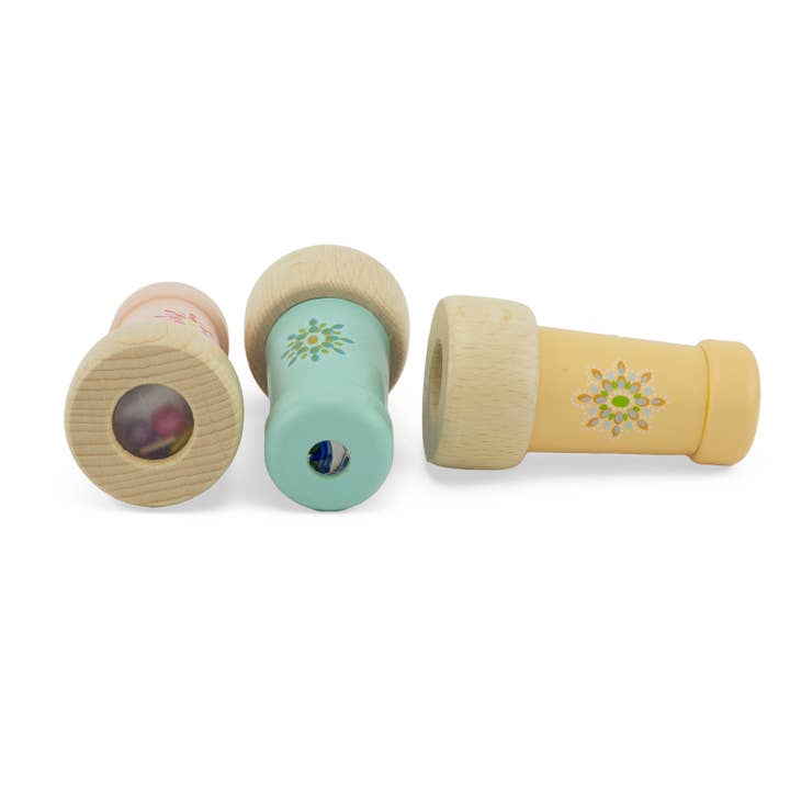 Gib deinem Kind eine einzigartige visuelle Erfahrung mit unserem Mini-Kaleidoskop, das 8,3 cm lang ist! Dieses Set enthält 12 Kaleidoskope, die in einer praktischen Display-Box geliefert werden. Perfekt für Kinder ab 18 Monaten. Mit drei verschiedenen Designs in sanften Farben wird dein Kind von den wechselnden Mustern, die durch das Rohr zu sehen sind, begeistert sein. Es ist ein unterhaltsames und lehrreiches Spielzeug, das die Fantasie deines Kindes anregt.