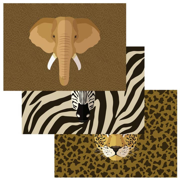 Verleihe deiner Tischdekoration eine wilde Note mit unseren 6 recycelbaren Platzsets im Savannah-Motiv. Diese Sets zeigen detailreiche Porträts deiner Lieblingstiere aus der Savanne: Elefant, Panther und Zebra. Sie passen perfekt zu unseren Bechern und Serviettenringen und können auch als Poster zur Dekoration des Kinderzimmers verwendet werden.