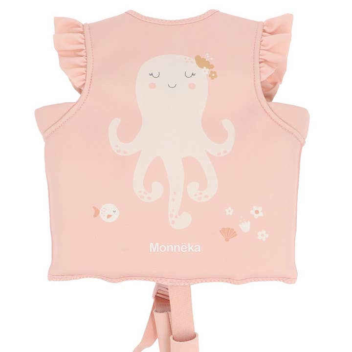 Der Schwimmweste der Kollektion Jolie the Octopus von Tutete bietet Sicherheit und Komfort für kleine Schwimmer. Der Schwimmweste ist mit einem Sicherheitsgurt ausgestattet, der zwischen den Beinen verläuft und dafür sorgt, dass der Weste nicht über den Kopf rutscht, wenn das Kind senkrecht ins Wasser springt oder einfach im Wasser treibt.