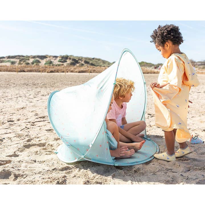 Entdecke das praktische Pop-up-Zelt der Crab Sage Kollektion, perfekt für sonnige Tage am Strand, Pool oder im Garten! Dieses Zelt bietet Schutz vor der Sonne mit 50+ UPF und ist kinderleicht aufzubauen. Einfach aus der Transporttasche nehmen und es entfaltet sich in Sekunden. Mit den beiliegenden Schritt-für-Schritt-Anleitungen lässt es sich genauso schnell wieder zusammenpacken.
